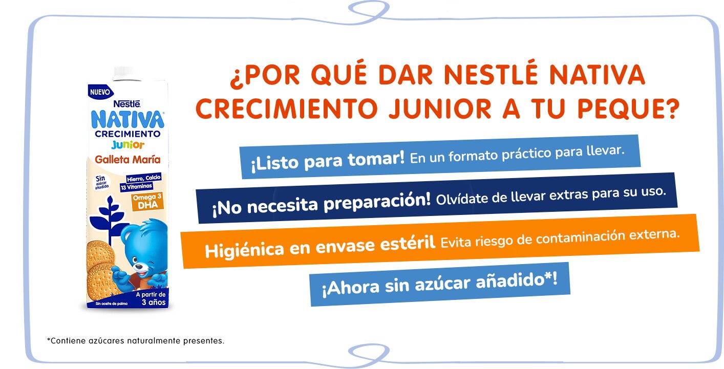 Los niños en edad preescolar tienen una mayor actividad física e intelectual. Por eso, los pediatras recomiendan tomar 1/2 litro de leche. La leche NESTLÉ CRECIMIENTO JUNIOR Galleta María está adaptada a las necesidades de los peques a partir de 3 años. Además, está elaborada con leche del norte de España y contamos con ganaderos locales.